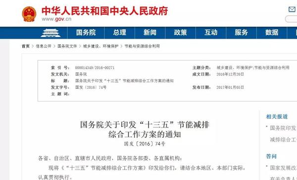 近日,经李克强总理签批,国务院印发《“十三五”节能减排综合工作方案》(以下简称《方案》),明确了“十三五”节能减排工作的主要目标和重点任务,对全国节能减排工作进行全面部署。