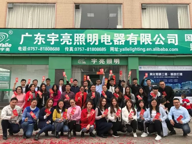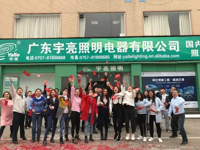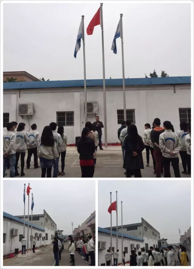 国旗及灯港照明的旗帜徐徐升起,恭祝灯港照明科技有限公司开工大吉!