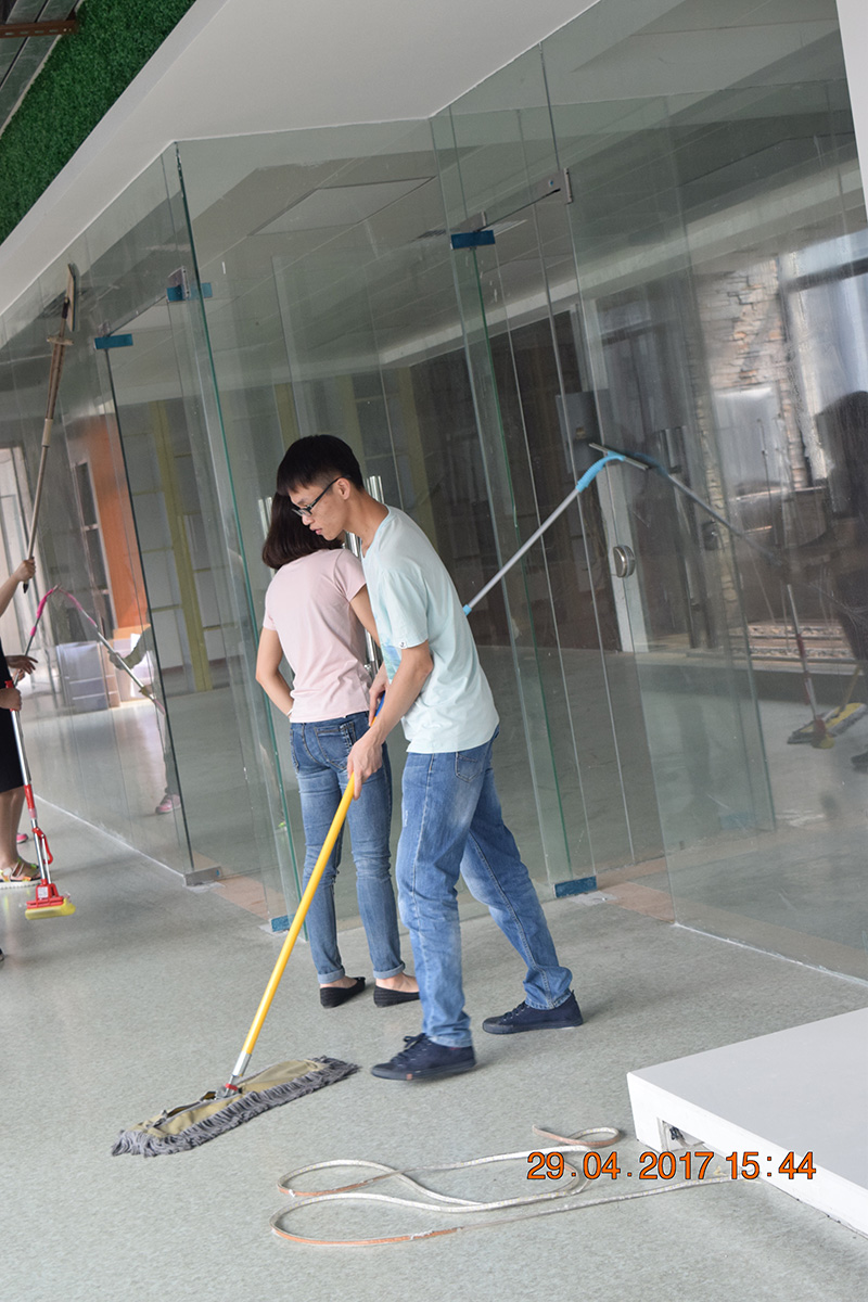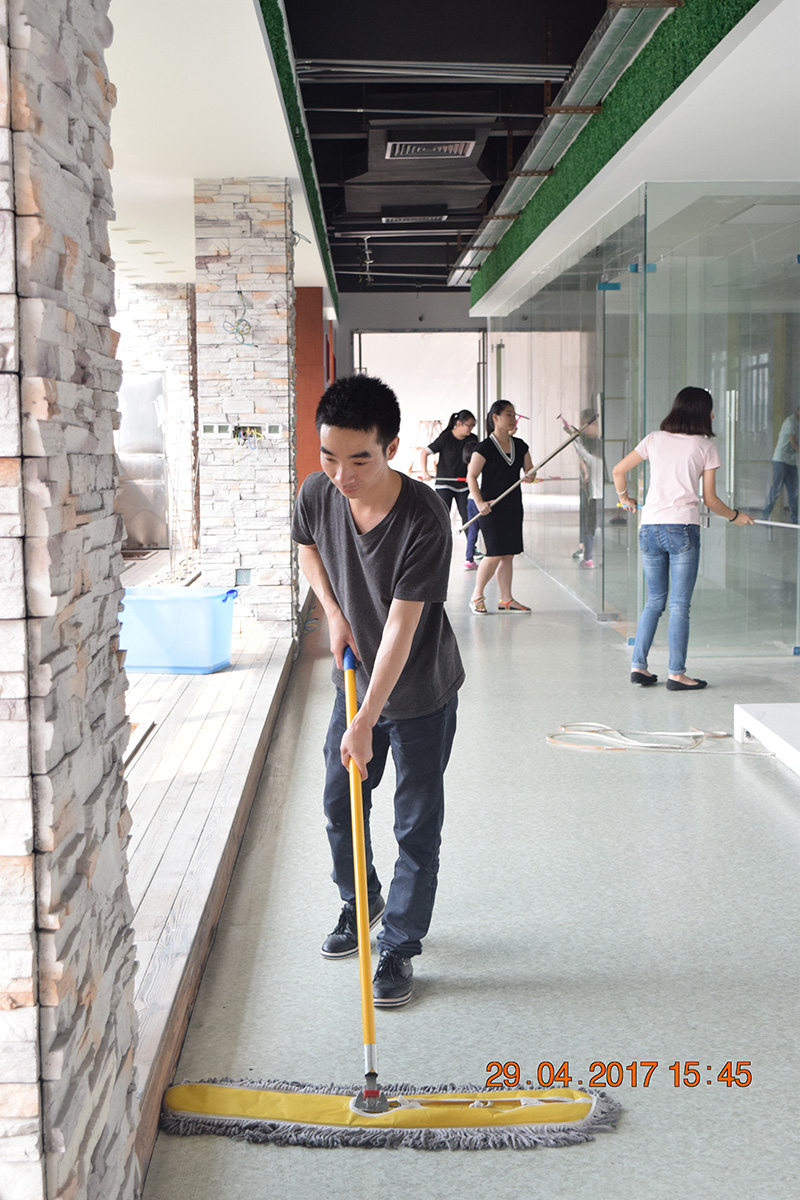 劳动的过程是创造,劳动创造一切。虽然劳动的形式和内容不同,但一切劳动的过程都是在进行创造或创作。我们共同努力地为未来每一位在这里办公的同事创造干净整洁的环境。