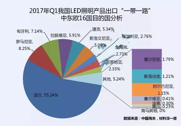 一季度我国LED出口中东欧16国同比增长5.68%