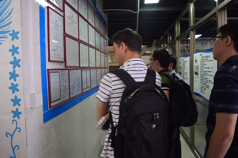 我司领导带领客户浏览我司环境与资质墙