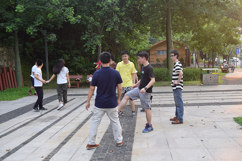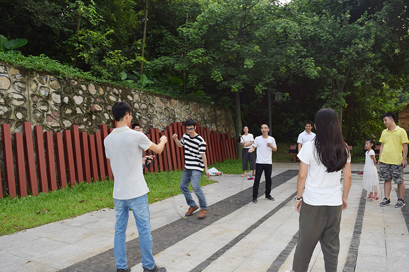 游戏关是由位位队员开始踢满5个然后交由下一位队友,依次类推,快全部成员踢满毽子数的队伍——蓝队获得这轮胜利并获得精美礼品一份。这一关主要考验我们反应速度和体力。