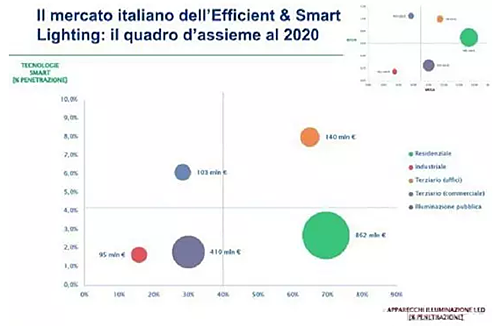 相关调研显示,在2020年前,意大利LED及智能照明市场有望以两位数的速度增长。这意味着在2020年,除了价值1.4亿欧元的智能照明市场,意大利的LED市场必定会从2015年的9亿欧元增长并超过12亿欧元……