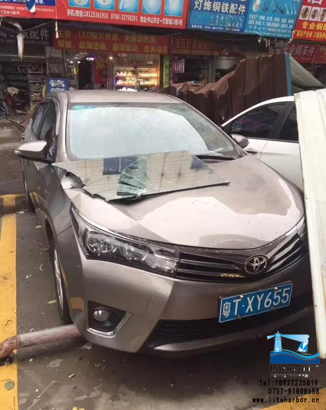 广告牌砸中小车