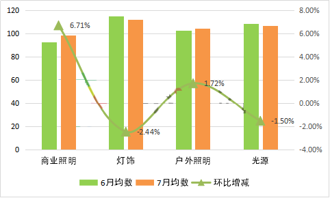 商业照明系列7月均数为98.75点,较6月上涨6.71%;