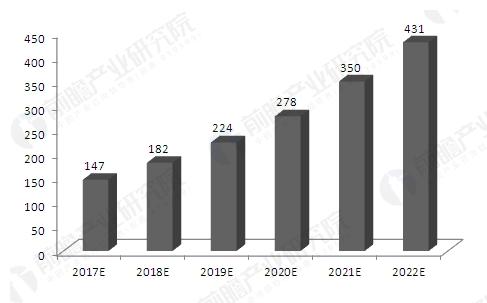 2017-2022年中国智能照明行业市场规模预测(单位:亿元)