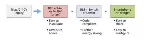 总体而言,照明厂商在选择数码照明方面的优势非常有吸引力。为了说明这一点,智能数字照明的每个步骤的主要优点如图5所示。将蓝牙添加到现有的三端双向可控硅开关/ 0-10V架构上需要增加成本,但是将现有调光器添加智能功能,则更便宜。将BLE添加到交换机和传感器上,并分析使用更智能控制的条件,同时保持代码合规性,我们可以节省更多的能源。