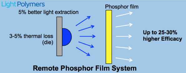 “Light Polymers的技术包括具特殊性能的水相液晶材料,能将荧光粉紧密包裹在一起,达到大蓝光转换率”,Light Polymers的黄志豪博士解释。“如此一来就能使用各种中低功率的蓝光LED,不仅可省略昂贵的分bin或挑拣作业,也不需要高亮度LED所需的昂贵大型散热片,增添额外花费。使用此技术开发的照明产品可将色偏降到低,并减少亮度下降幅度,而且比采用传统封装技术的LED照明设备更省电。”