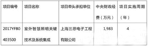 2017年8月28日,国家科技部与上海三思电子工程有限公司签署了《室外智慧照明关键技术及系统集成任务书》。