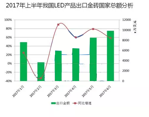 历经十年淬炼,金砖合作机制已经成为新兴市场国家和发展中国家合作的主要平台。9月3日—5日,金砖国家领导人第九次会晤在中国厦门举行,吸引全球目光。2017年上半年我国LED照明产品出口金砖国家的情况: