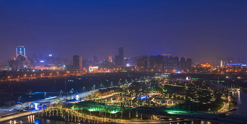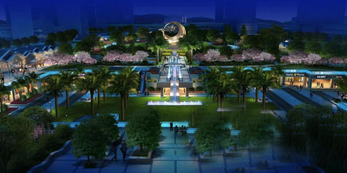 项目内流经的水系主要有锦江河、张宅河以及三洋湿地,同时又以张宅河为主要的水系空间,照明重点针对其中的驳岸进行设计,夜间形成连贯的视觉“线”,水系中部区域设置大功率LED投光灯,形成震撼的视觉冲击。在游船码头、亲水平台等位置设计灯光小品。在展现水系的灵动与活力的同时,增加夜游的趣味性与互动性。