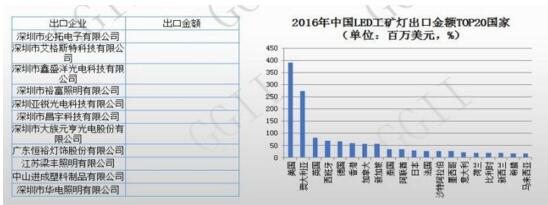 GGII数据显示,2016年中国LED工矿灯出口目的国主要是美国和澳大利亚,两国合计占中国LED工矿灯出口规模将近40%。