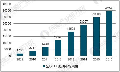 随着LED照明技术的迅速发展,LED照明产品的稳定性、使用寿命、智能化、显指、光效等性能指标逐步保持稳定,达到客户接受状态,产品市场应用持续提高。前瞻数据库显示,2016年全球LED照明市场规模达到346亿美元,同比增长15.8%。