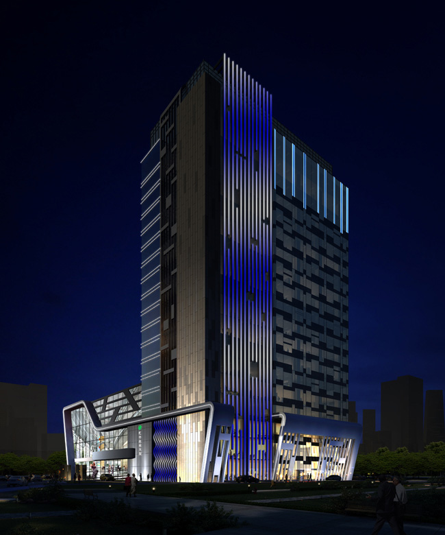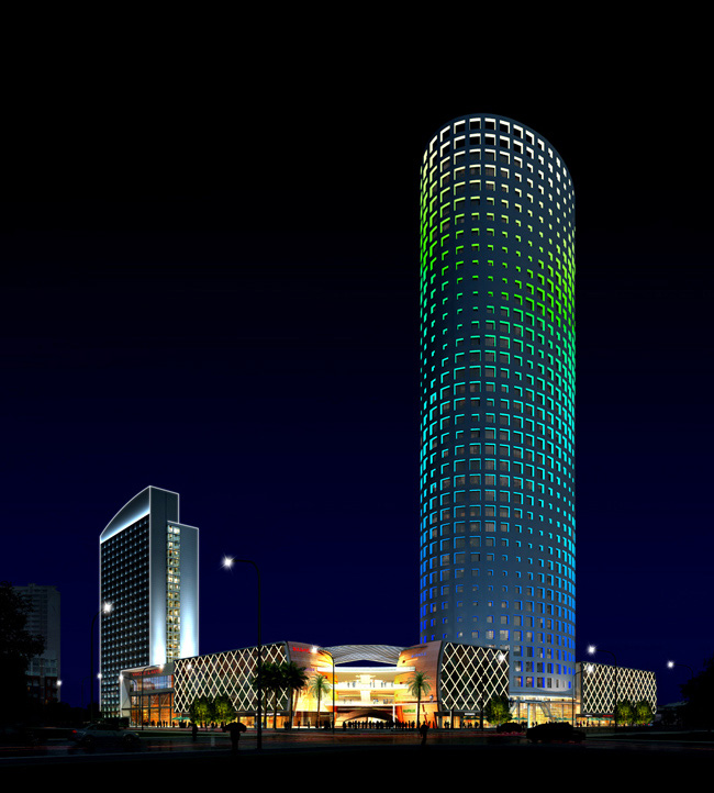 户外照明工程中高层楼体亮化设计作为城市亮化的主力,突出建筑型体,注重楼体夜间亮化本身主题的表达以及周围环境的烘托,进行合理的亮化设计规划,突出本体建筑的整体性。