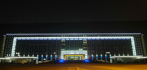 龙奥大厦建筑面积37万平米,造价40亿,是世界上大的单体建筑之一 ,也是世界上大的政府大楼。内部走廊周长为1公里,有40多部电梯,设有电话和电脑信息点插座就45000个。