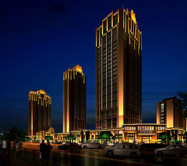 泛光照明在避免眩光的条件下会使楼体建筑得到充分的体现,避免在大面积相同亮度所引起的刻板感觉,所以根据建筑的结构选择光源和灯具,尽可能地安装在装潢物的后面,使灯具避开人们的视线,尽可能使灯具不破坏楼体亮化工程的整体亮化效果。